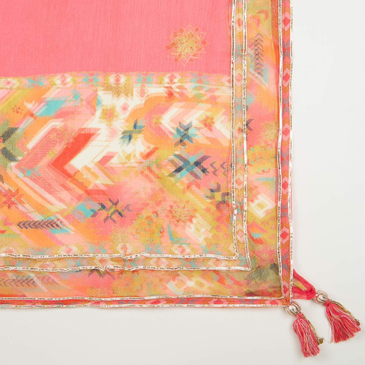 - Dupatta: Chiffon Printed Dupatta with Gota Lacchi Embroidery
