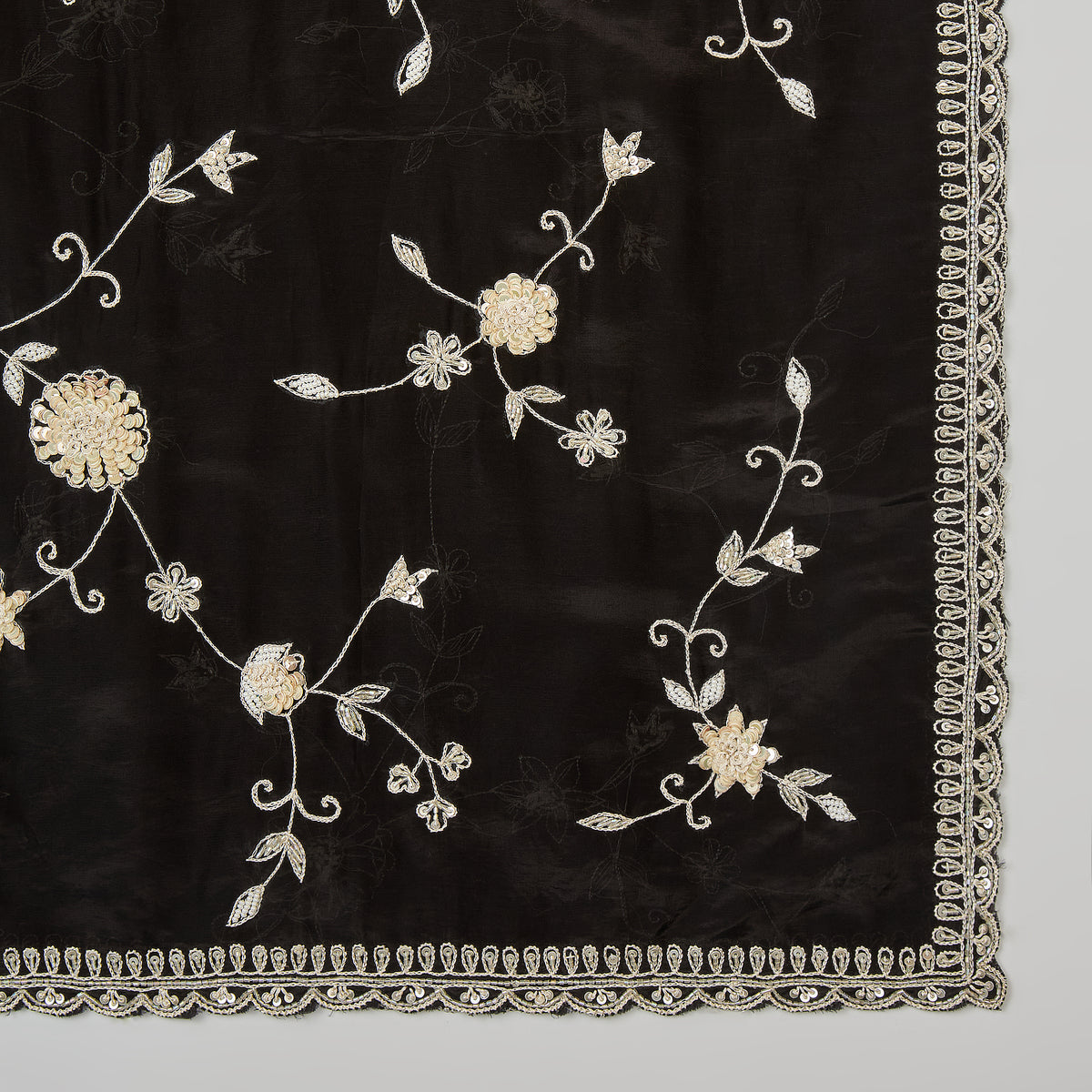 Black Color Soft Organza Kurta With Sequins, Resham, Beeds, And Cutdana Work In Daman And All Over Butti Dupatta Also Same Fabric With Heavy Jaal And Plain Viscose Crepe Bottom