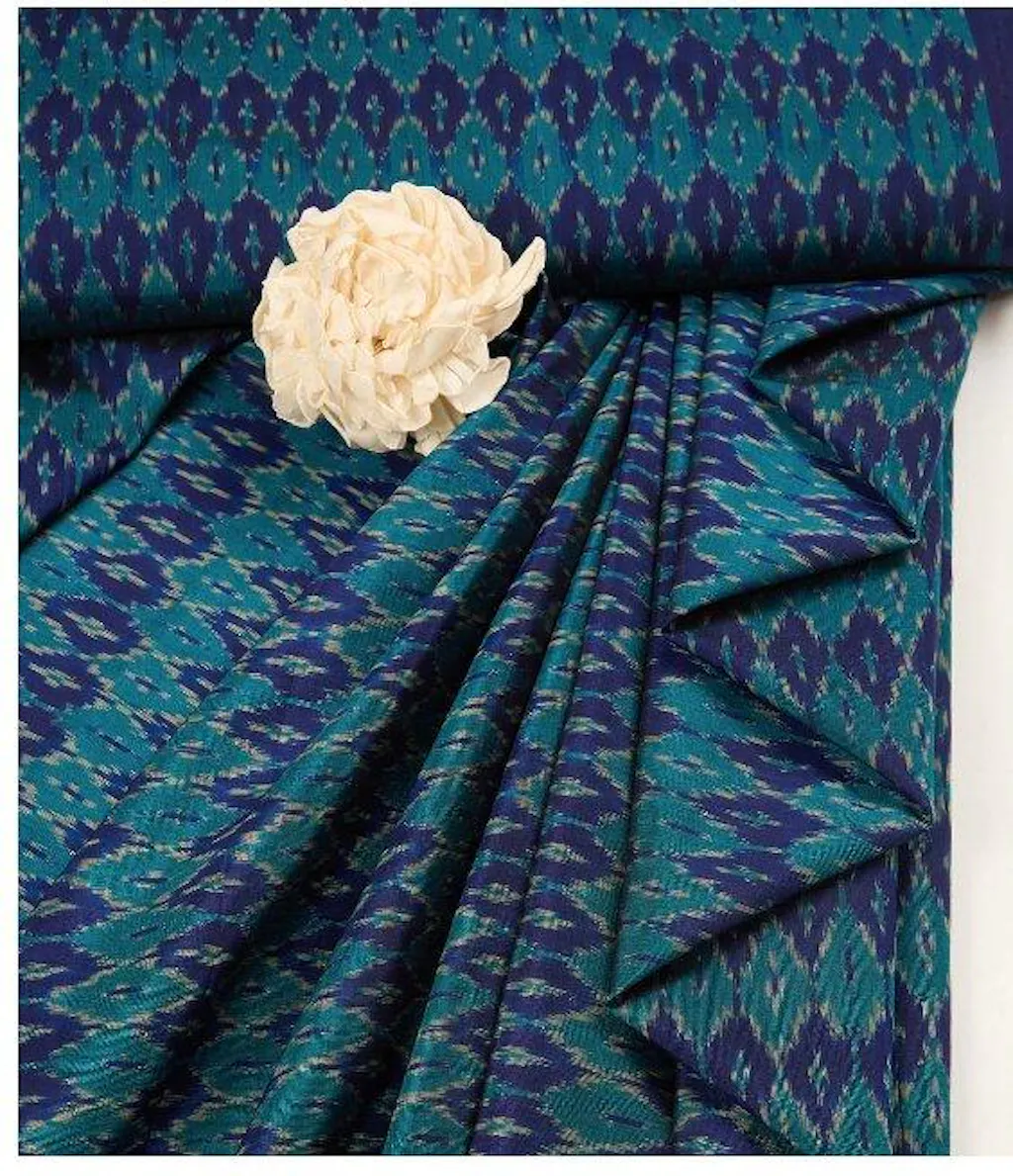 Discover the beauty of Vandanaβs Cotton Silk Ikat Fabric, crafted with care to combine comfort and elegance. Its soft texture, lightweight feel, and artisanal weaving make it ideal for daily wear or creative designs.