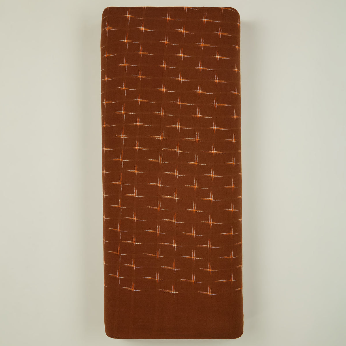 Celebrate handcrafted elegance with this Coffee Brown Handloom Cotton Ikat Fabric. Expertly woven using traditional ikat techniques, each thread reflects fine craftsmanship and cultural richness. The soft and breathable cotton texture makes it perfect for creating ethnic wear, kurtas, sarees