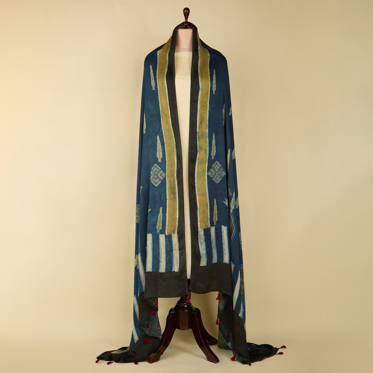 - Features authentic Ajrakh hand block prints