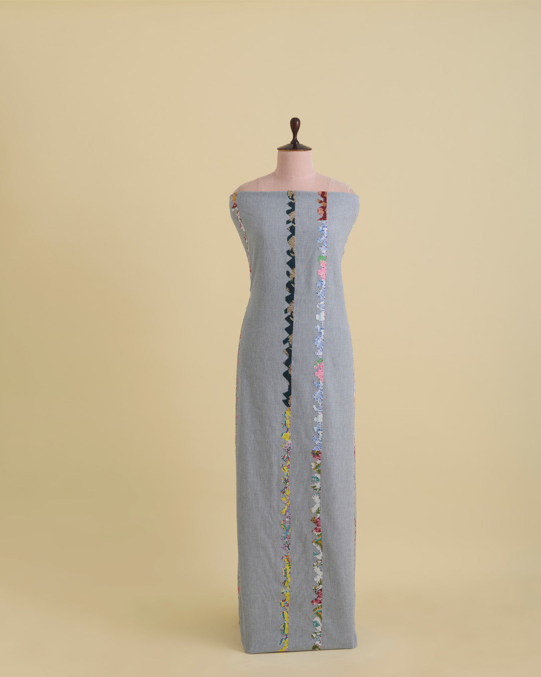 Featuring a classic white and grey colour palette, this fabric is versatile and easy to style, making it suitable for both minimal ethnic wear and modern fusion silhouettes.