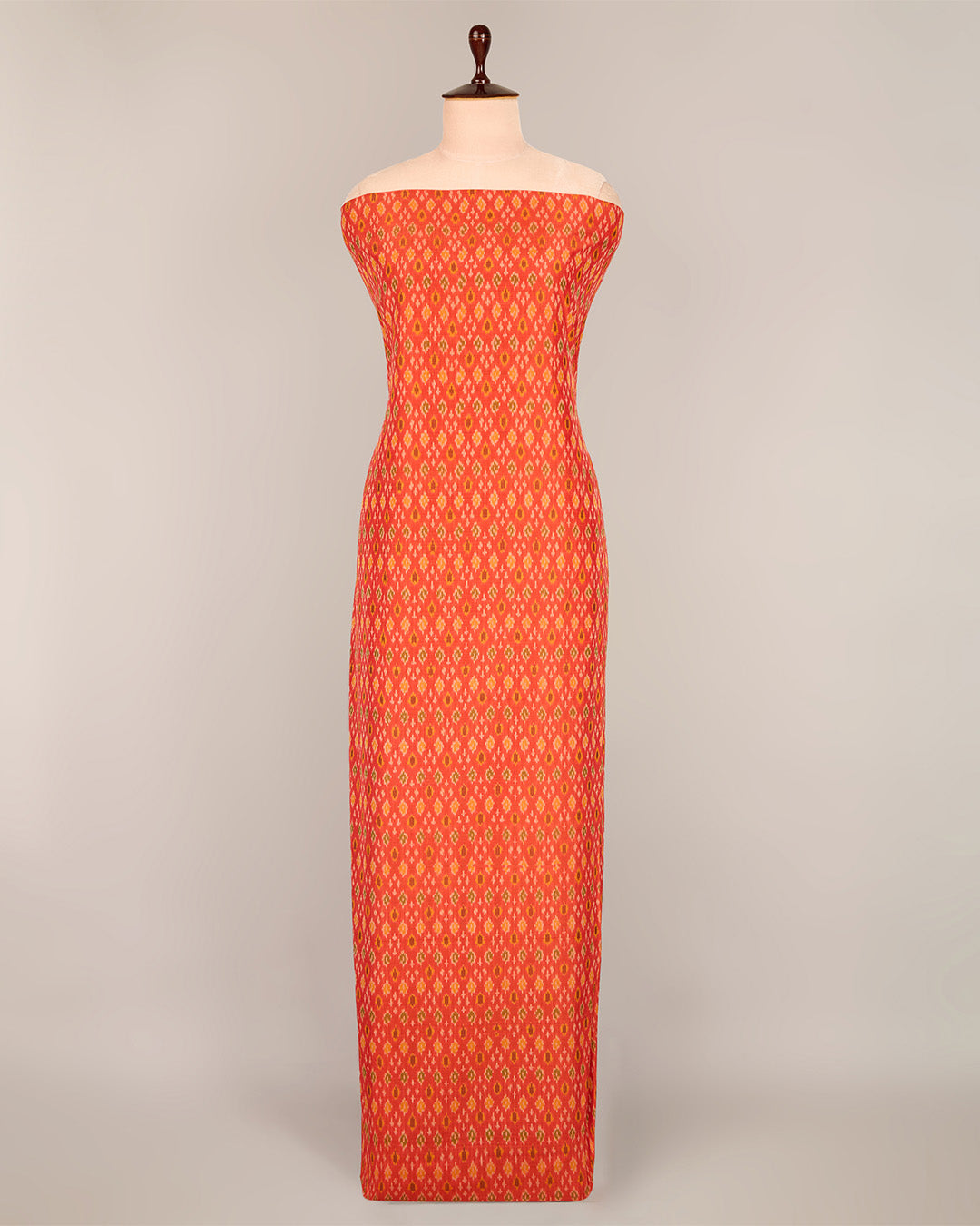 Elegant and timeless, this Red Cotton Silk Ikat Fabric is crafted using traditional handwoven techniques. Its luxurious texture and vibrant hue make it ideal for ethnic wear, blouses, kurtas, or creative home decor projects.