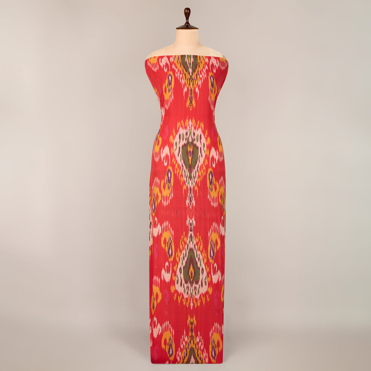 Bold red tone in heavy cotton ikat for eye-catching ethnic or fusion designs.