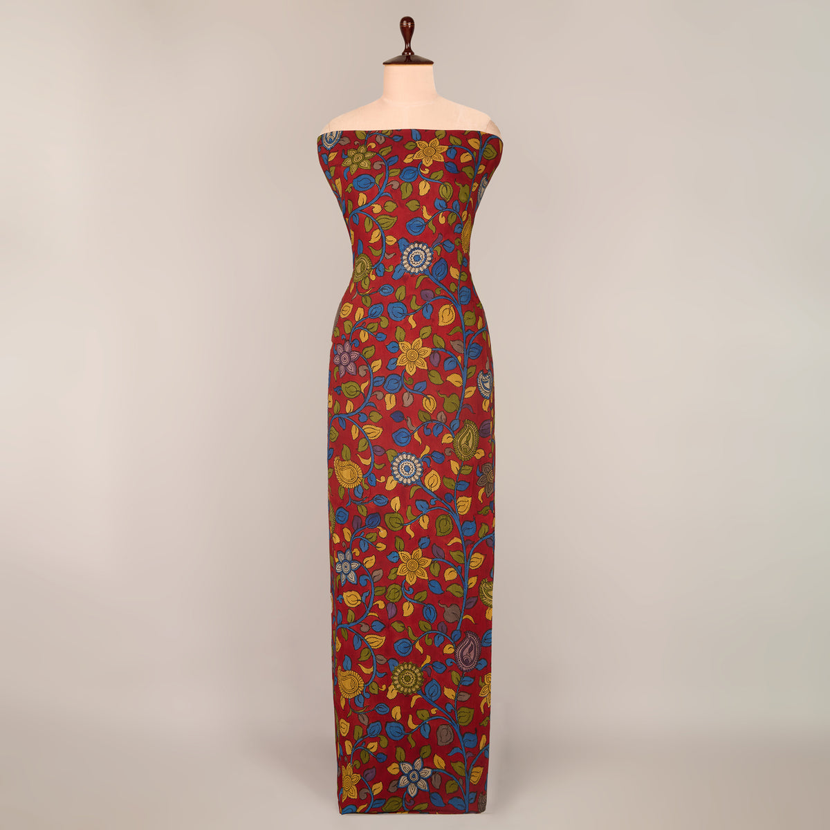 Vandana’s Maroon Kalamkari Jaal Fabric brings artisanal detailing and timeless charm to your sewing projects. A soft and breathable fabric for versatile fashion use.