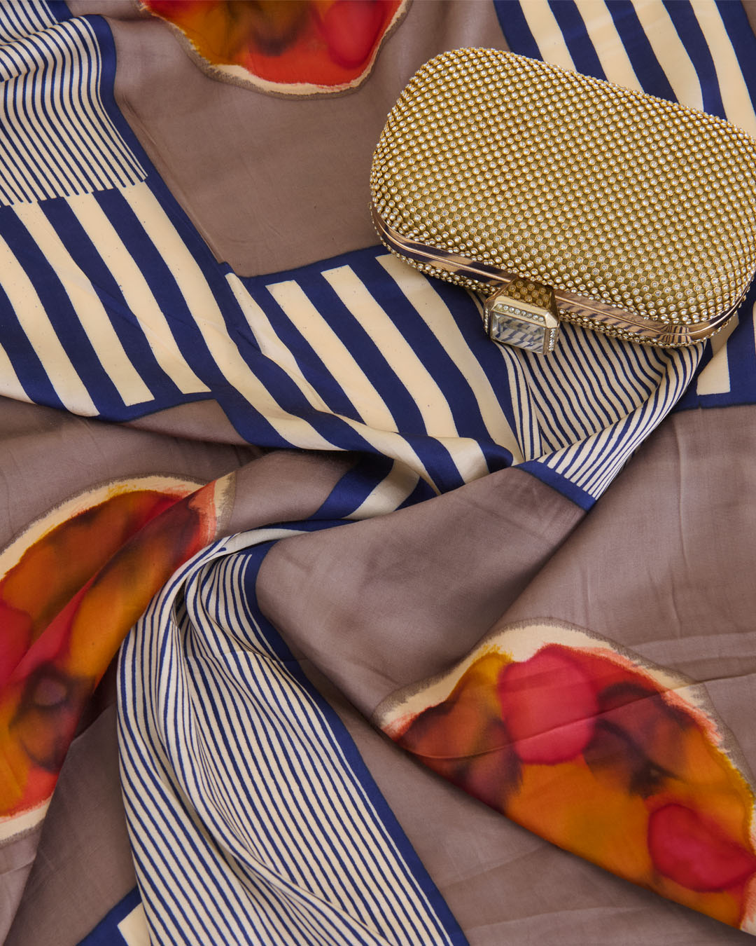Elevate your modern wardrobe creations with this modal satin digital abstract printed fabric. The soft, fluid texture of modal satin ensures a luxurious drape, while the digital abstract design adds a contemporary artistic appeal.