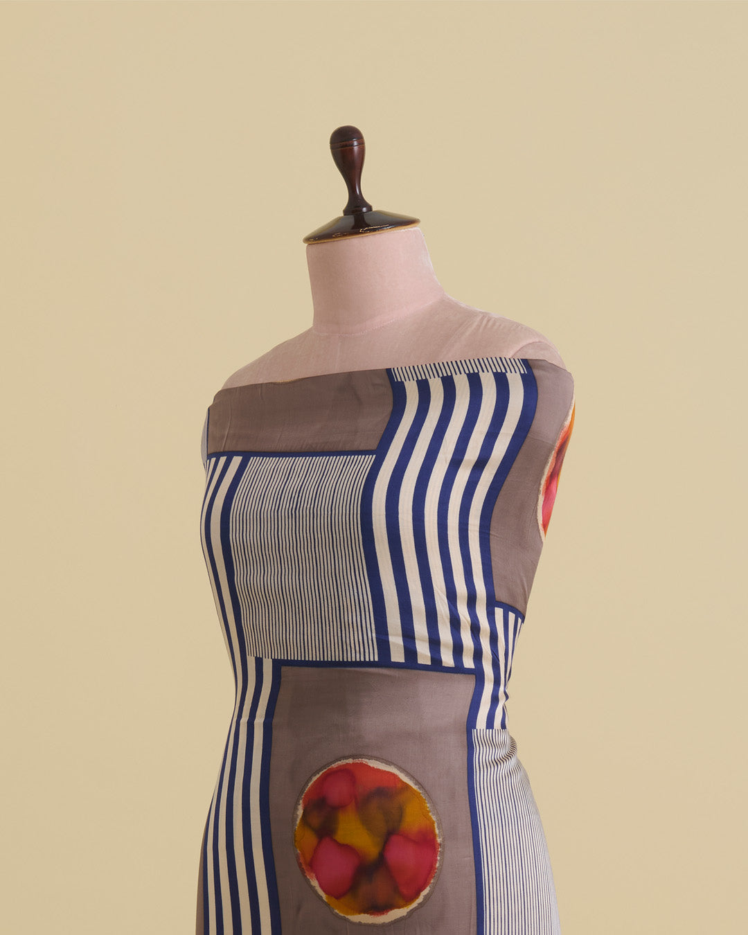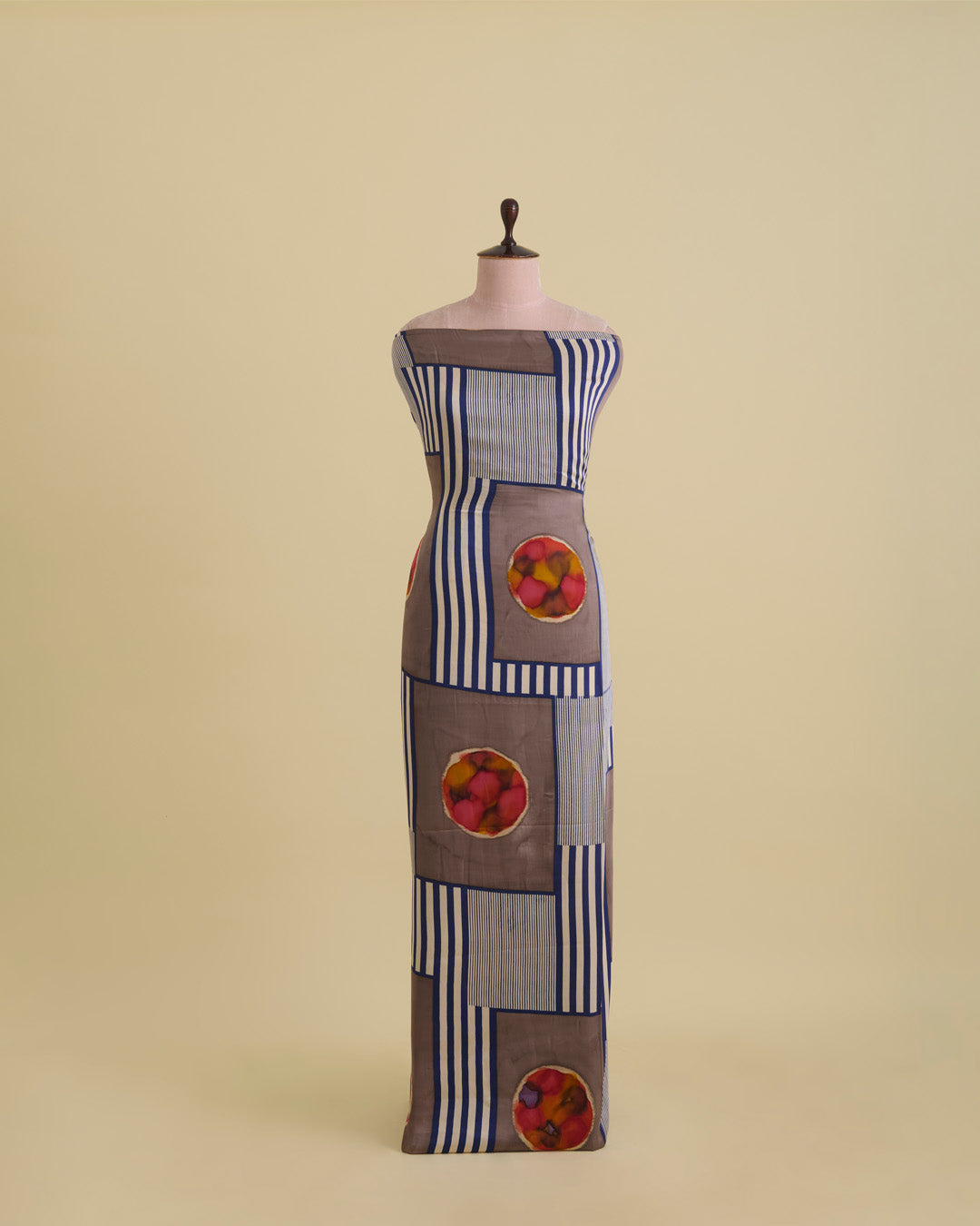 Featuring a calming grey and blue colour palette, this fabric is perfect for creating statement dresses, tops, and fusion wear that combine comfort with style.