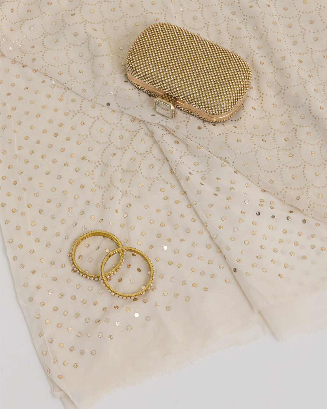 Elevate your ethnic collection with this elegant Off White Georgette Heavy Badla Work Dupatta from Vandana Fabrics. Crafted from premium georgette fabric, it offers a lightweight feel, smooth drape, and graceful flow.