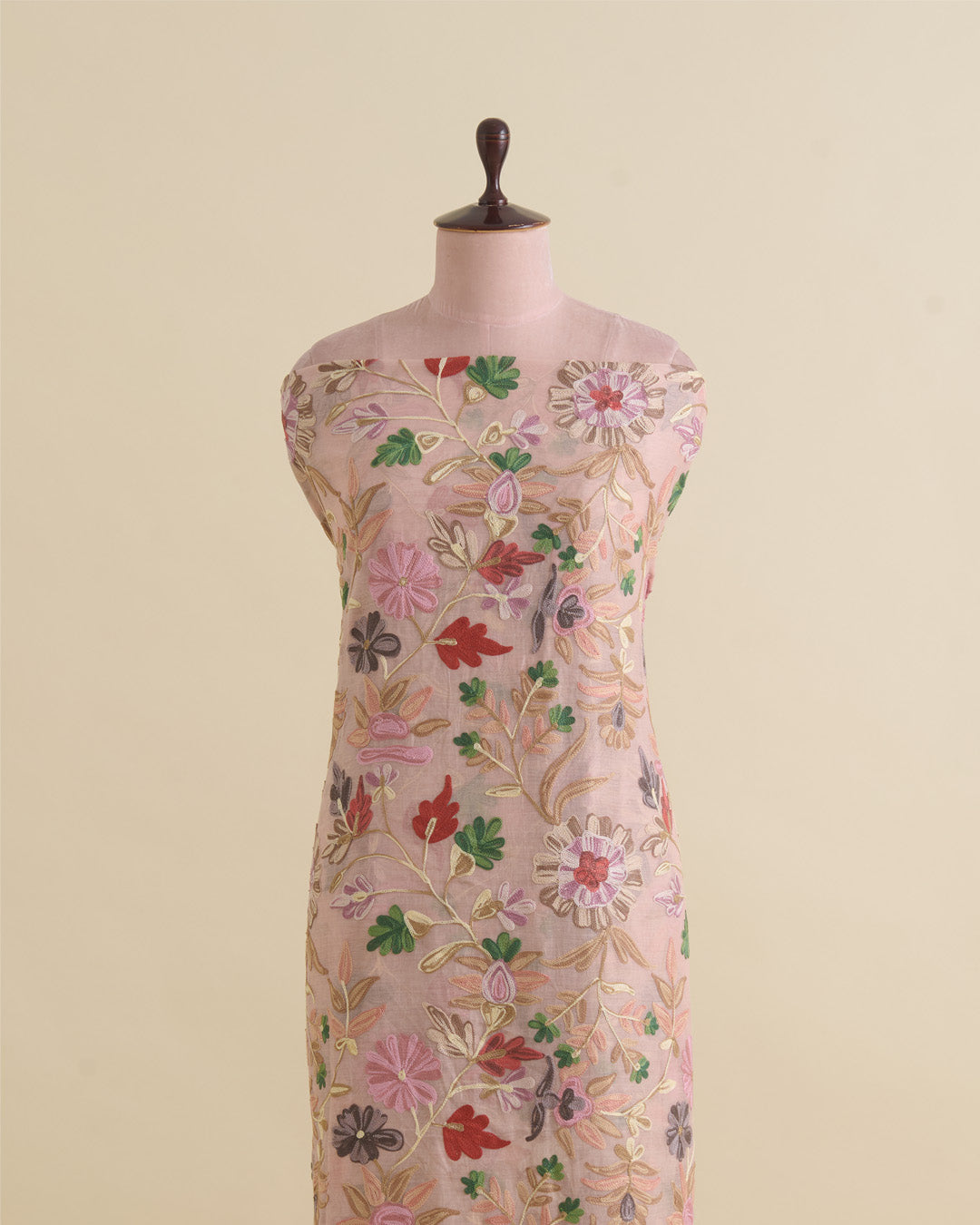 The intricate Kashmiri jaal embroidery enhances its rich ethnic and royal appeal, making it perfect for sarees, lehengas, salwar suits, bridal wear, festive outfits, and designer couture. The elegant peach shade adds a subtle, classy, and timeless charm to every creation.