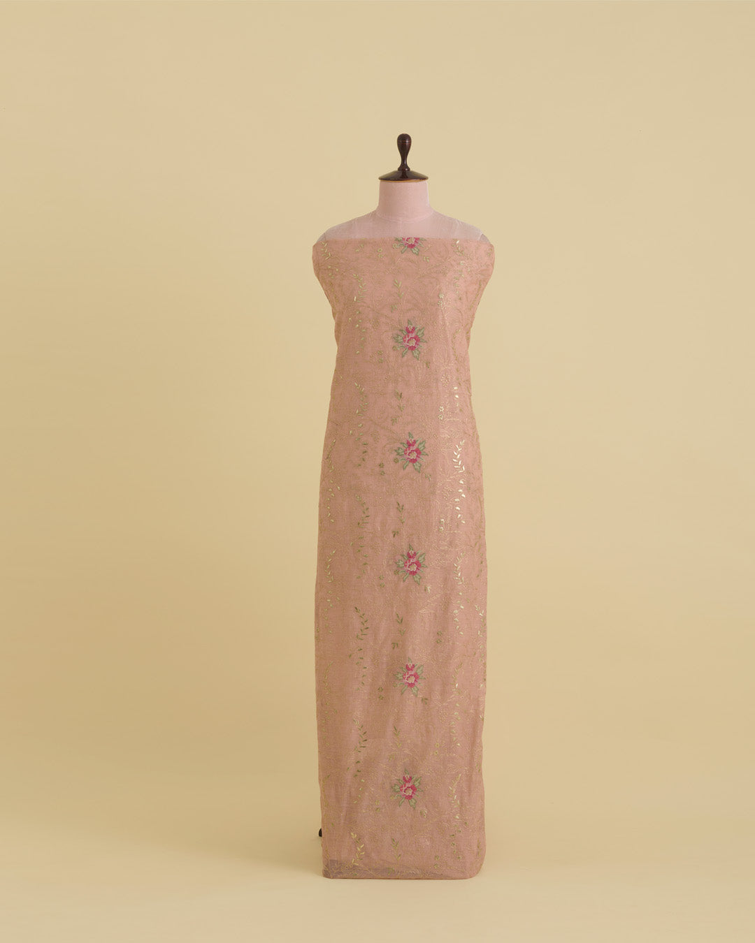 Elevate your ethnic collection with this Peach Fine Chanderi Tarkashi Fabric, beautifully detailed with intricate cross stitch embroidery. The fine chanderi texture offers a soft, lightweight feel, perfect for creating elegant suits, kurtas, or fusion outfits.