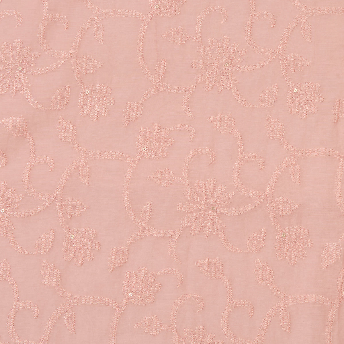 Peach self-embroidered chanderi kurta with orange-red thread dupatta. Light and festive ethnic ensemble.