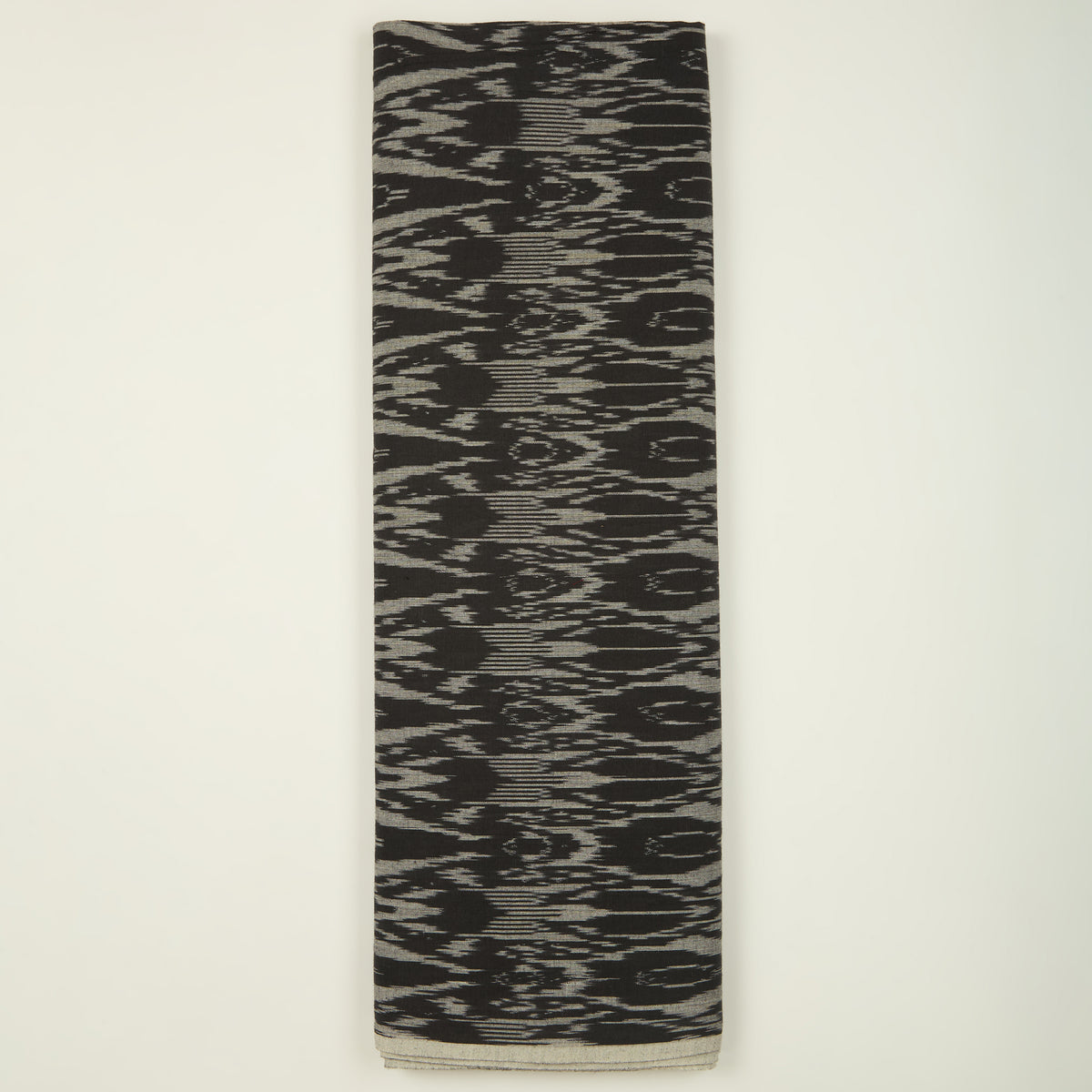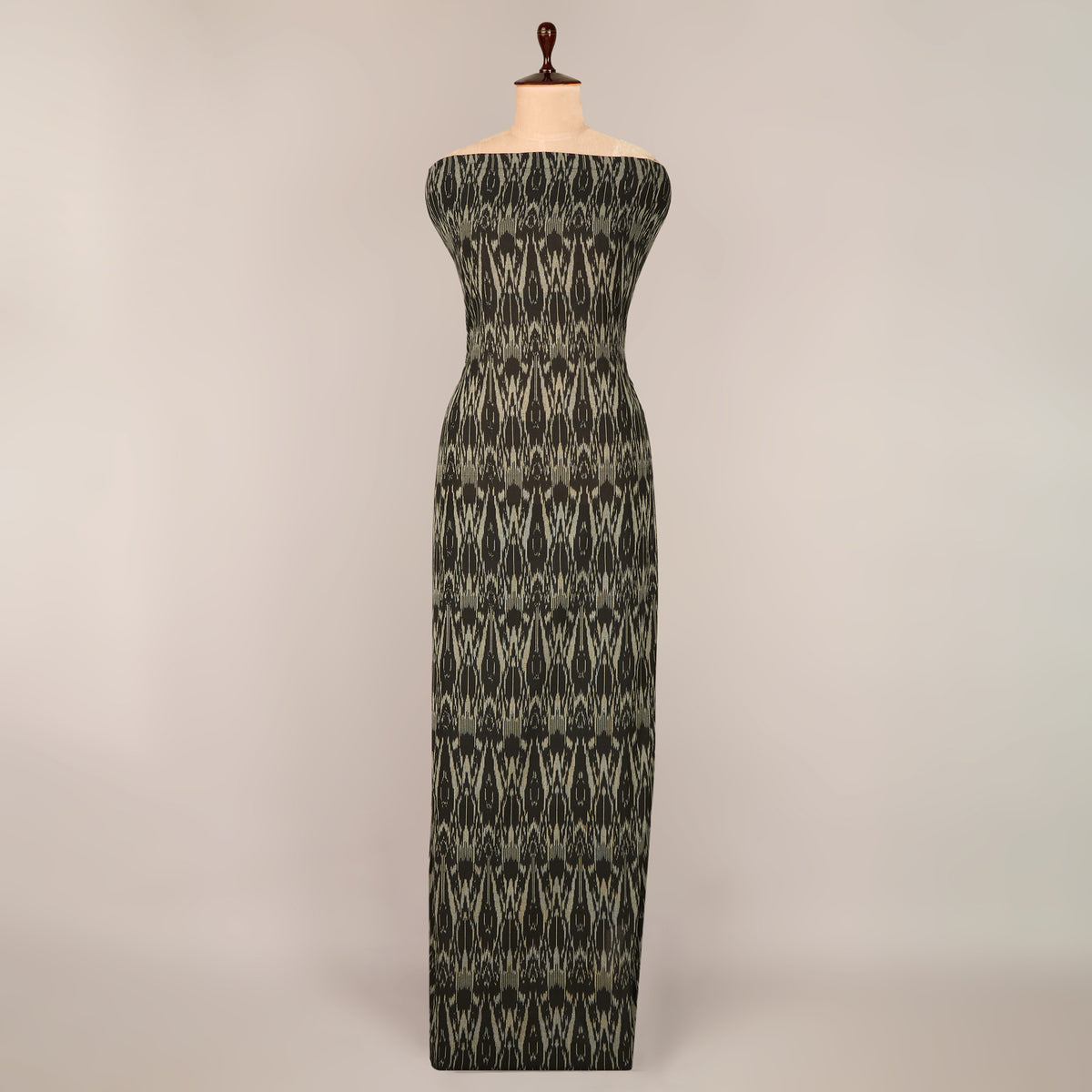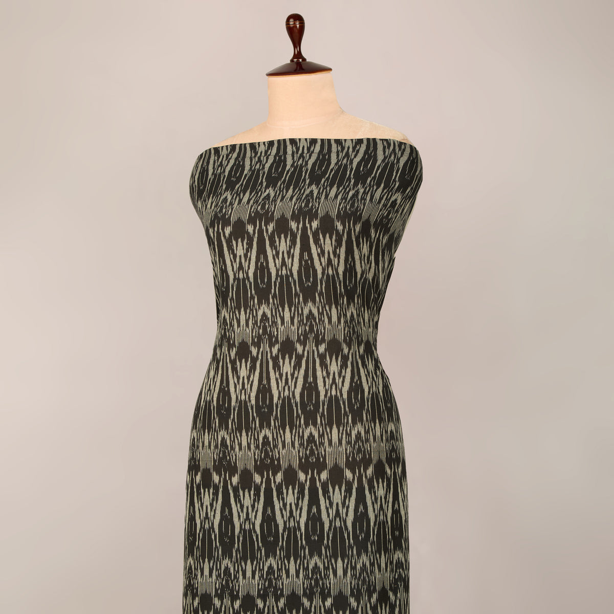 Pure black handloom cotton ikat fabric is a wardrobe staple. The dramatic monochrome effect is perfect for tailored outfits like culottes, peplum tops, or kurta sets.