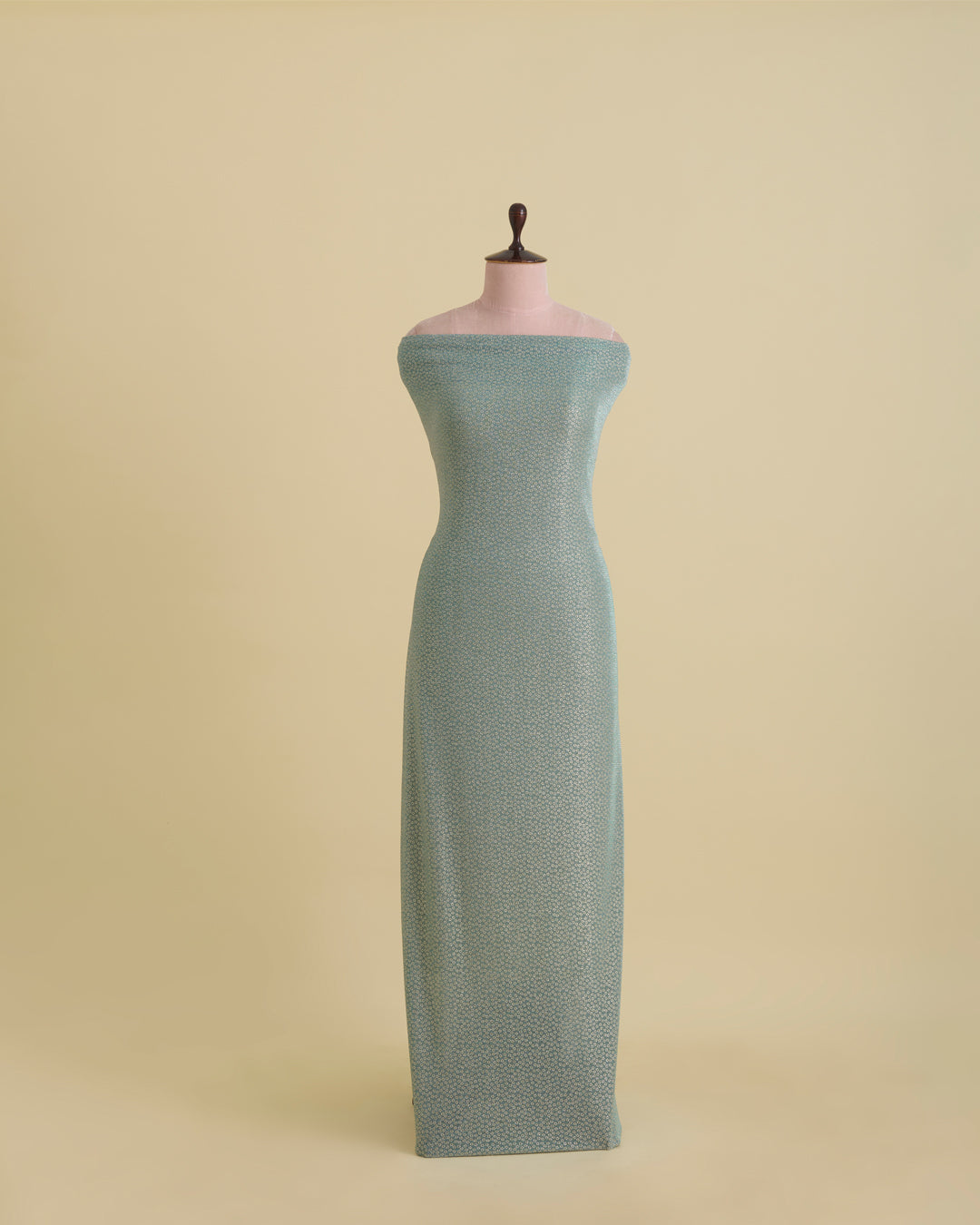 Add a touch of glamour to your creations with this dusty blue wrinkled shimmer fabric, featuring delicate foil buti designs. The unique texture and subtle sheen make it perfect for contemporary and festive outfits, offering both style and elegance.