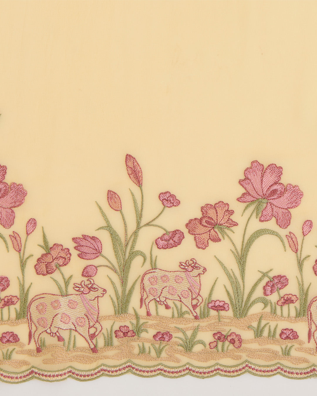 Brighten your ethnic ensemble with this Yellow Semi Georgette Dupatta, beautifully detailed with traditional Kashmiri embroidery. The vibrant hue combined with fine handcrafted work adds a rich cultural charm to any outfit.