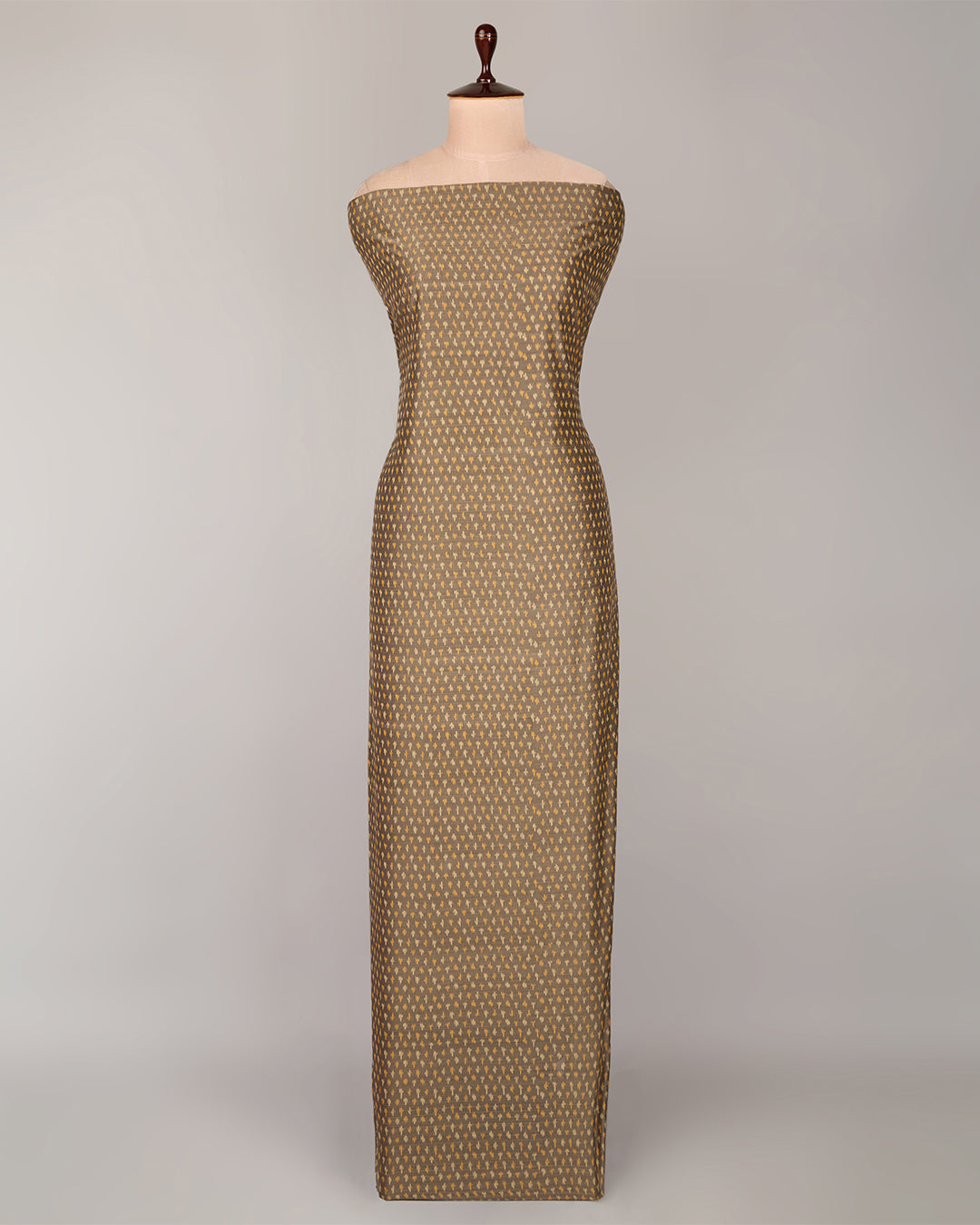 Elevate your wardrobe with our premium Yellowish Grey Cotton Silk Ikat Fabric, woven with traditional Ikat patterns. The luxurious texture and vibrant hues make it ideal for festive wear, kurtas, or elegant ethnic outfits.
